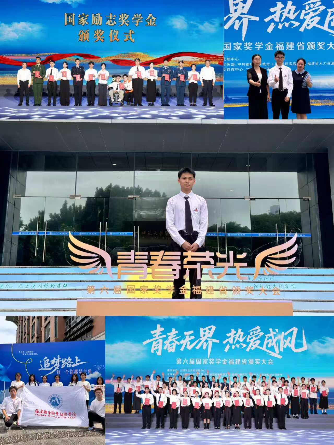 6月11日,“青春無界·熱愛成風”第六屆國家獎學金福建省頒獎大會在福建師范大學舉行。我校醫(yī)學院2022級臨床醫(yī)學602班黃育豪同學作為全省12名國家勵志獎學金獲獎代表之一上臺領獎,這是我校學子第三年作為獲獎代表到現(xiàn)場接受表彰。副校長黃銘珊及師生代表一同參會。