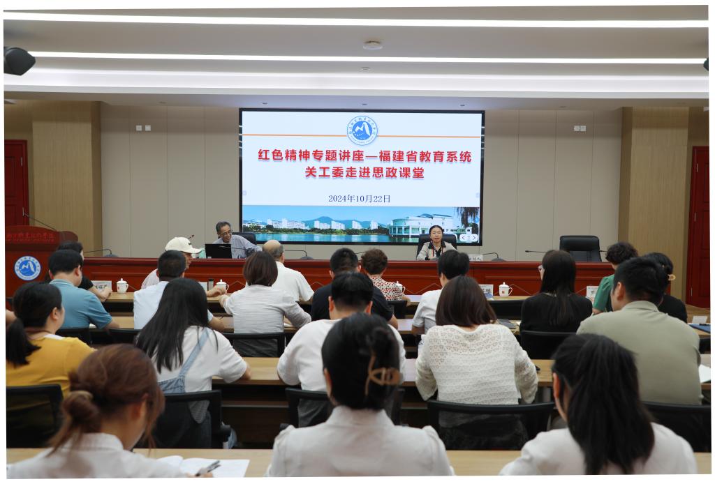為深入學(xué)習(xí)貫徹習(xí)近平新時(shí)代中國特色社會主義思想,發(fā)揚(yáng)紅色傳統(tǒng),傳承紅色基因,引領(lǐng)師生繼續(xù)堅(jiān)定跟黨走、建功新時(shí)代,10月22日,我校關(guān)工委邀請福建省教育系統(tǒng)關(guān)工委主任陳晃走進(jìn)學(xué)校思政課堂,為校師生代表舉辦紅色精神專題講座,福建省教育系統(tǒng)關(guān)工委副秘書長、辦公室主任羅永倩陪同。校關(guān)工委主任嚴(yán)肅、副主任陳雄出席講座,校關(guān)工委、二級學(xué)院關(guān)工委、學(xué)生工作部黨支部、團(tuán)委負(fù)責(zé)人、輔導(dǎo)員代表和學(xué)生代表共100余人參加講座,講座由副校長、校關(guān)工委副主任黃銘珊主持。