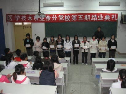 2010年2月2日下午,醫(yī)學(xué)技術(shù)系第五期業(yè)余分黨校結(jié)業(yè)典禮在系部第二階梯教室隆重舉行。結(jié)業(yè)典禮由系團(tuán)總支書記副黃小芳老師主持,系黨總支副書記洪聿榮老師和全體培訓(xùn)班學(xué)員出席了結(jié)業(yè)典禮。