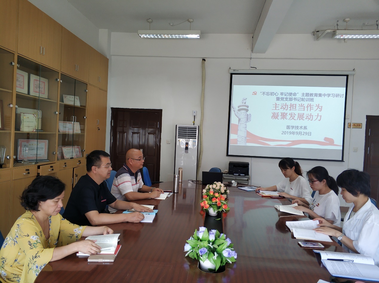 9月29日,醫(yī)學(xué)技術(shù)系黨總支在系部301會議室開展“主動擔(dān)當(dāng)作為,凝聚發(fā)展動力”專題第一場學(xué)習(xí)研討。本次會議由醫(yī)學(xué)技術(shù)系黨總支負責(zé)人邱滾忠同志主持,醫(yī)學(xué)技術(shù)系領(lǐng)導(dǎo)班子及各黨支部書記共同參與。