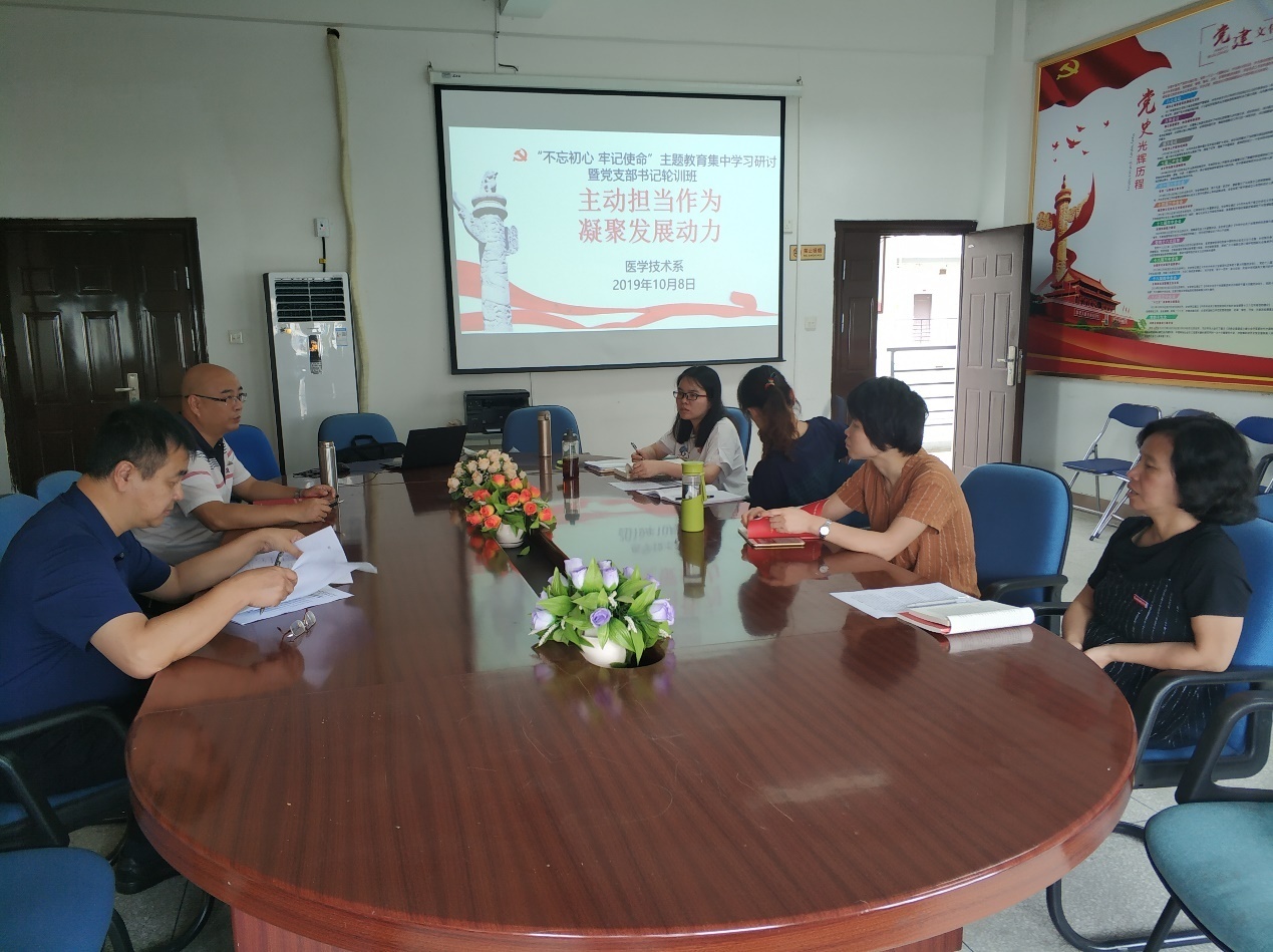 10月8日,醫(yī)學(xué)技術(shù)系黨總支在系部301會(huì)議室開展“主動(dòng)擔(dān)當(dāng)作為,凝聚發(fā)展動(dòng)力”專題第二場(chǎng)學(xué)習(xí)研討暨黨支部書記輪訓(xùn)。本次會(huì)議由醫(yī)學(xué)技術(shù)系黨總支負(fù)責(zé)人邱滾忠同志主持,醫(yī)學(xué)技術(shù)系領(lǐng)導(dǎo)班子及各黨支部書記共同參與。