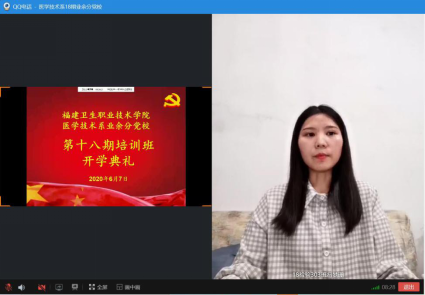 2020年6月7日,醫(yī)學(xué)技術(shù)系舉行第十八期業(yè)余分黨校培訓(xùn)班開班儀式。本次開班通過網(wǎng)絡(luò)平臺線上開展,醫(yī)學(xué)技術(shù)系黨總支負(fù)責(zé)人邱滾忠老師,第一黨支部書記林雪金老師、第二黨支部書記鐘偉雄老師、學(xué)生黨支部書記黃玲云老師,以及97名學(xué)員共同參加本次開班儀式。本次開班由18檢驗302班江鵬同學(xué)主持。