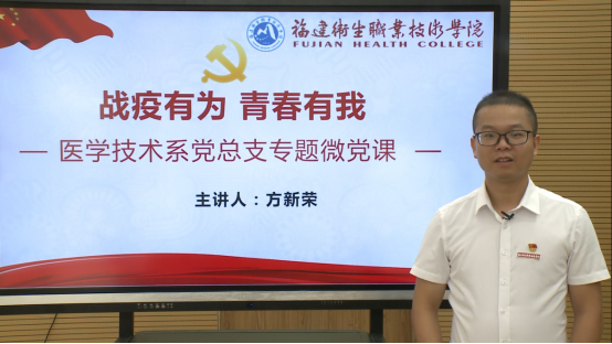 為貫徹落實(shí)黨中央關(guān)于常態(tài)化疫情防控的決策部署,讓黨旗始終高高飄揚(yáng)在疫情防控、返校復(fù)學(xué)、事業(yè)發(fā)展全過程全方位,醫(yī)學(xué)技術(shù)系黨總支于7月9日在實(shí)訓(xùn)樓三樓錄播室開展專題微黨課。本次微黨課圍繞《黨旗飄揚(yáng),凝心聚力,同共抗疫》主題開展,在校的黨員教師參與集中學(xué)習(xí),其余黨員師生在線參與學(xué)習(xí)。