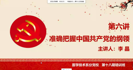 6月11日中午,醫(yī)學(xué)技術(shù)系第十八期業(yè)余分黨校培訓(xùn)班第二課開講,醫(yī)學(xué)技術(shù)系黨總支委員李晶老師擔(dān)任此次課程的主講人。本次課程圍繞“準(zhǔn)確把握中國共產(chǎn)黨的綱領(lǐng)”展開。她號召同學(xué)們,要準(zhǔn)確深入領(lǐng)會黨的綱領(lǐng),增強(qiáng)“四個(gè)意識”和“四個(gè)自信”,在黨中央的領(lǐng)導(dǎo)下堅(jiān)定走中國特色社會主義道路,做中國特色社會主義的可靠接班人。