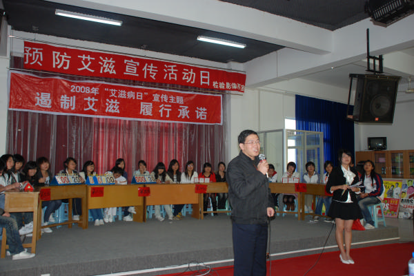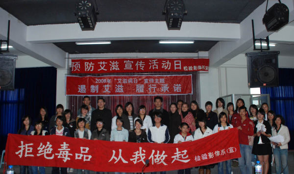 檢驗(yàn)影像系文藝部以主題“遏制艾滋,履行承諾”,于2008年12月2日下午2點(diǎn),在學(xué)生活動(dòng)中心三樓舉辦了一場(chǎng)艾滋病知識(shí)競(jìng)答活動(dòng)。參加此次活動(dòng)的嘉賓有:來(lái)自閩侯防疫站的工作人員和本系的老師。參賽選手分別由:護(hù)理系、藥學(xué)系、臨床醫(yī)學(xué)系、檢驗(yàn)影像系組成8個(gè)小組。