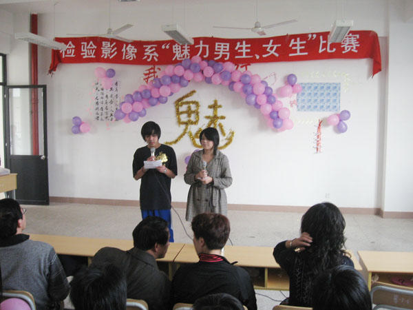 為加強校園精神文明建設(shè),豐富校園第二課堂,活躍師生文化生活,學院定于2OO7年4月至5月舉辦以“文明校園因你——和諧”為主題的校園文化藝術(shù)節(jié)。 檢驗影像系于2007年4月26日下午在教學樓205舉行了“魅力男生、女生”預選賽,本次活動有10余名選手參加,通過“個性才藝,你我爭風”、綜合知識問答、形象展示和“尋找同伴,同舟共濟”4輪的比賽,最終評選出一、二、三等獎、鼓勵獎和最佳人氣獎。