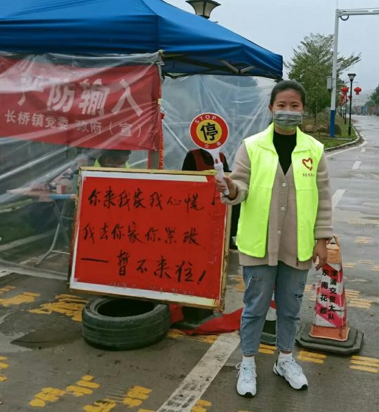 18眼視光302班陳抒靜同學(xué)是福建省漳州市南靖縣豐田鎮(zhèn)豐田社區(qū)抗擊疫情一線志愿者,職責(zé)是與社區(qū)工作人員一起勸返外縣人員來訪查驗(yàn)車輛進(jìn)出通行證,引導(dǎo)宣傳抗擊疫情相關(guān)知識(shí)政策,測量體溫和提醒佩戴口罩。她說:“查驗(yàn)工作很順利,大部分人都非常理解和支持我們志愿者的工作,身處在抗疫防疫第一線時(shí),深刻地感受到這場突如其來的疫情對人們的考驗(yàn)。身為一名志愿者,我會(huì)為抗擊疫情出一份力,用行動(dòng)抗擊疫情。”