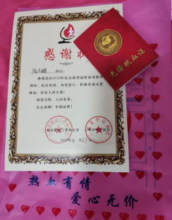 黃蕾玲同學(xué)說:“雖然之前已經(jīng)獻過一次血,還是會怕針怕痛。但是想到獻出一些血也算出了一點微薄之力,雖然跟那些抗戰(zhàn)在前線的醫(yī)護人員是無法相比的。關(guān)愛生命,無償獻血,是人間傳遞真情的紐帶,是千百年來中華民族傳統(tǒng)美德的宏揚, 是我們作為一名醫(yī)學(xué)生及社會一員而言所應(yīng)有的責任。無償獻血是關(guān)愛、是勇氣、是真情的奉獻。”