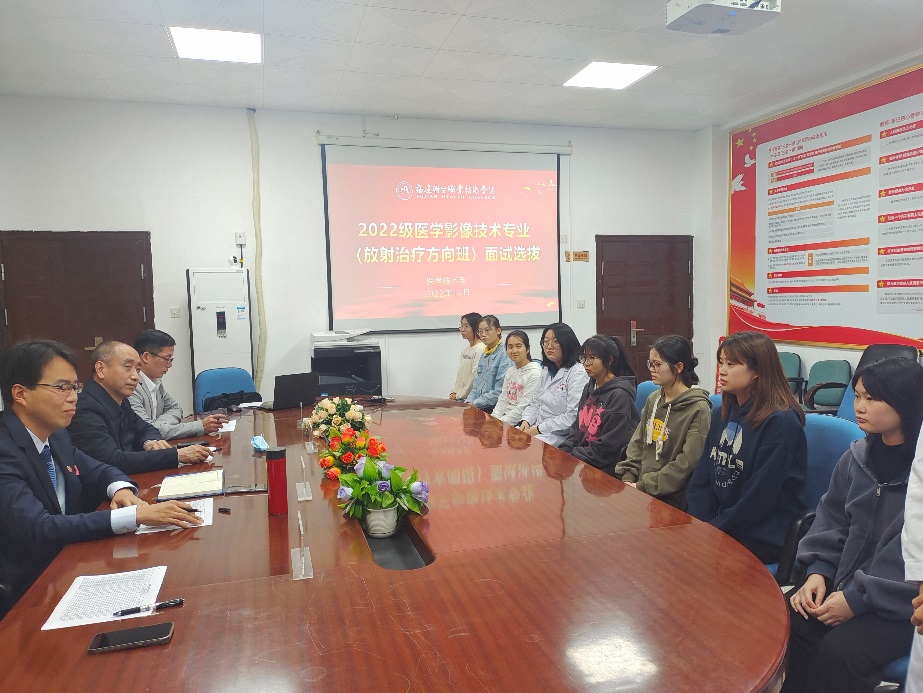 經(jīng)過(guò)兩個(gè)小時(shí)的面試,結(jié)合學(xué)生的在校成績(jī)及面試成績(jī),最后從中擇優(yōu)挑選32名學(xué)生,這些學(xué)生將于2022-2023學(xué)年的第二學(xué)期組成22放療301班,并按照放療方向的專業(yè)教學(xué)計(jì)劃進(jìn)行學(xué)習(xí)。