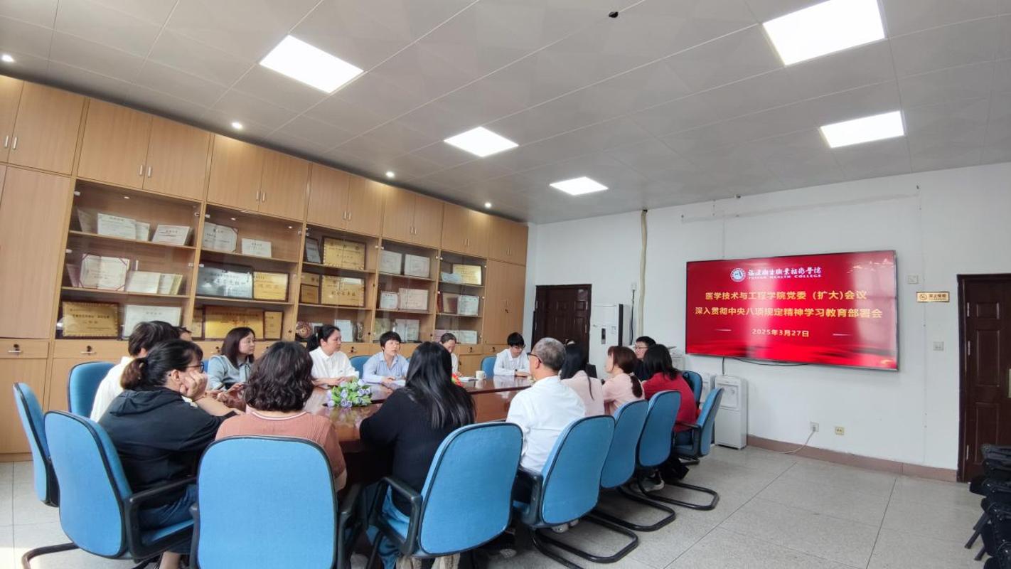 會議組織學習《中共中央政治局關于改進工作作風、密切聯(lián)系群眾的八項規(guī)定》,研究通過《中共福建衛(wèi)生職業(yè)技術學院醫(yī)學技術與工程學院委員會深入貫徹中央八項規(guī)定精神學習教育的實施方案》。