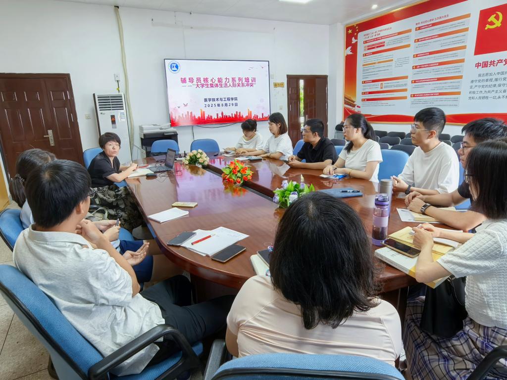 為全面貫徹習(xí)近平新時代中國特色社會主義思想和全國高校思想政治工作會議精神,進一步落實《全面加強新時代高校輔導(dǎo)員隊伍建設(shè)行動方案》文件要求,加強我院輔導(dǎo)員隊伍專業(yè)化、職業(yè)化建設(shè),提升輔導(dǎo)員的核心能力,醫(yī)學(xué)技術(shù)與工程學(xué)院按照輔導(dǎo)員核心能力提升內(nèi)訓(xùn)行動計劃方案,于8月29日舉辦輔導(dǎo)員核心能力培訓(xùn)第三課。全體專兼職輔導(dǎo)員參加了此次培訓(xùn)。