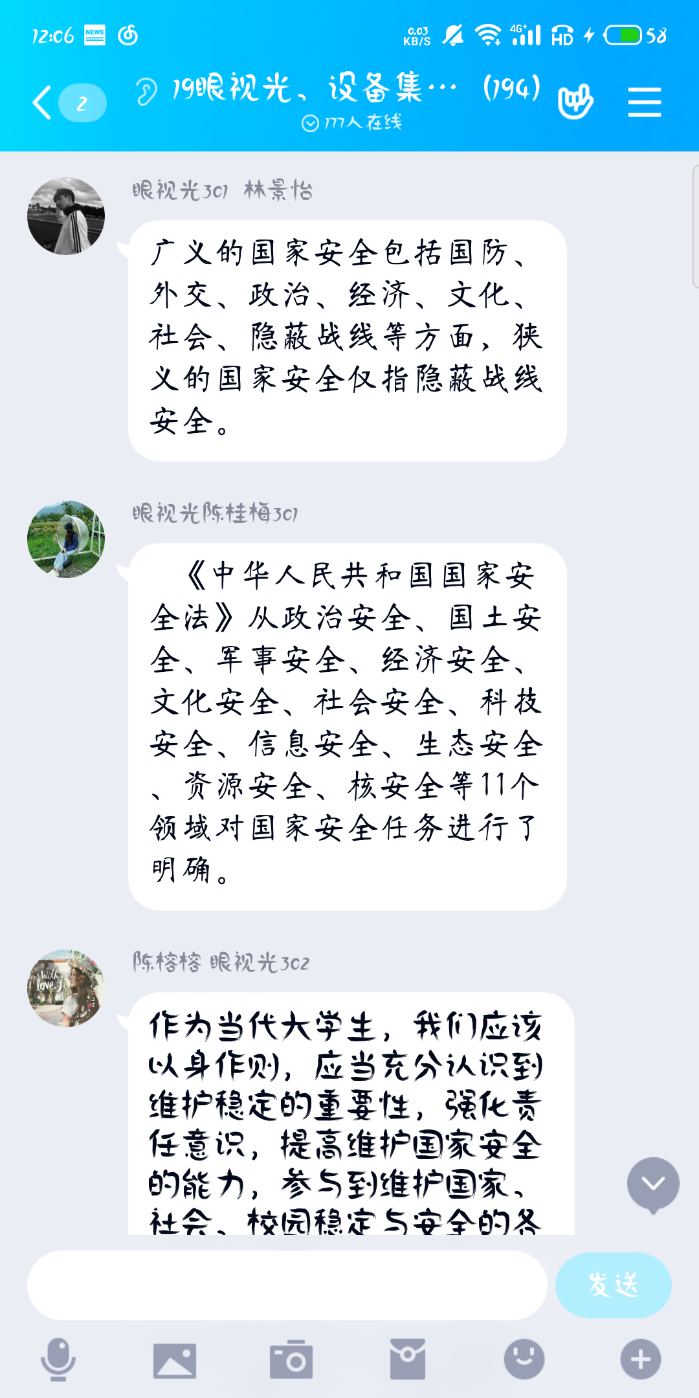 在團(tuán)日活動(dòng)中,同學(xué)們學(xué)習(xí)了“國(guó)家安全教育日”相關(guān)文章,觀看了“國(guó)家安全教育日”相關(guān)視頻。通過(guò)學(xué)習(xí),同學(xué)們明白了,國(guó)家安全,人人有責(zé);知道了,公民和組織發(fā)現(xiàn)危害國(guó)家的行為應(yīng)及時(shí)撥打12339舉報(bào)電話;記住了,當(dāng)發(fā)現(xiàn)國(guó)家秘密已經(jīng)泄露或者可能泄露時(shí),應(yīng)當(dāng)立即采取補(bǔ)救措施,并在24小時(shí)內(nèi)向同級(jí)保密行政管理部門(mén)和上級(jí)主管部門(mén)報(bào)告。