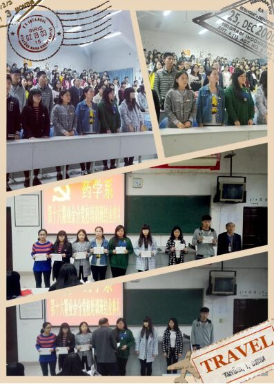 藥學(xué)系第十六期業(yè)余分黨校結(jié)業(yè)典禮于2016年1月5日下午在藥二階隆重召開,藥學(xué)系黨總支書記蘇愛華老師、第一黨支部書記葉雅沁老師、學(xué)生黨支部書記陳瑜老師、團總支書記李寶珠老師、團總支副書記黃嵩梅老師以及輔導(dǎo)員胡丹老師、蘇素嬌老師、陳翰老師出席了本次結(jié)業(yè)典禮。