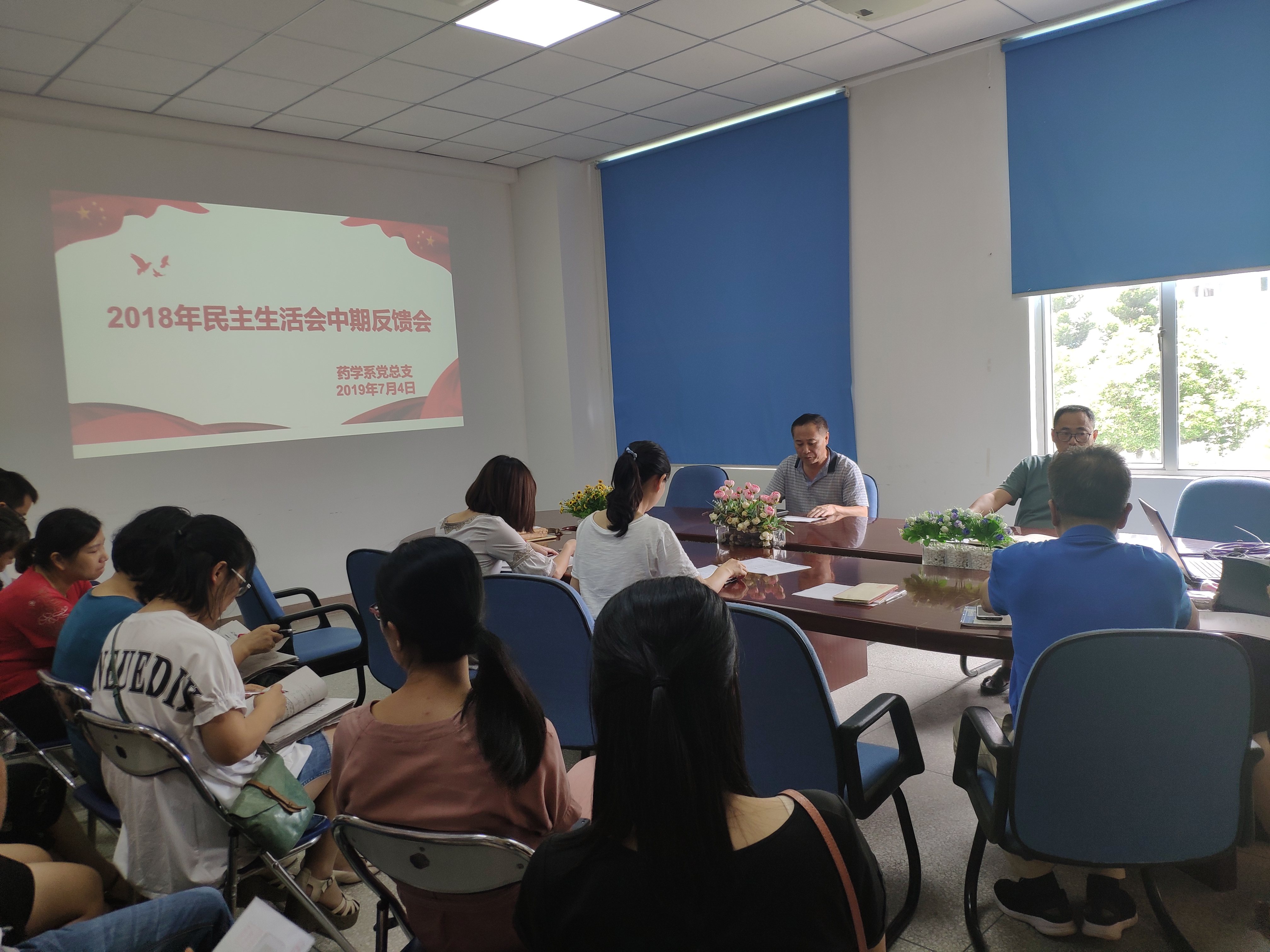 2019年7月4日,藥學(xué)系于系部會(huì)議室召開(kāi)2018年民主生活會(huì)整改情況中期反饋會(huì),會(huì)議由鄭力宏書(shū)記主持,全體教職工到場(chǎng)參加。