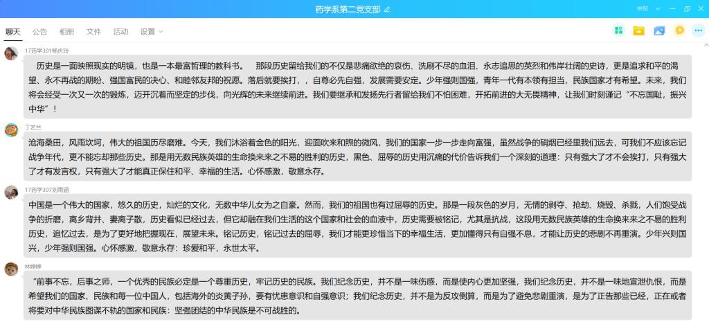 支部書記鄧元榮同志在QQ群中發(fā)布文檔資料,支部成員通過文字與圖片回顧了福州兩次淪陷的歷史。鄧元榮同志強(qiáng)調(diào)歷史看似已經(jīng)過去,但它卻融在我們生活的這個(gè)國家和社會(huì)的血液中,歷史需要被銘記。重溫這段慘痛的歷史,它提醒我們:勿忘國恥,保衛(wèi)祖國 ,珍愛和平,在慘痛中得到教訓(xùn),振興我中華。