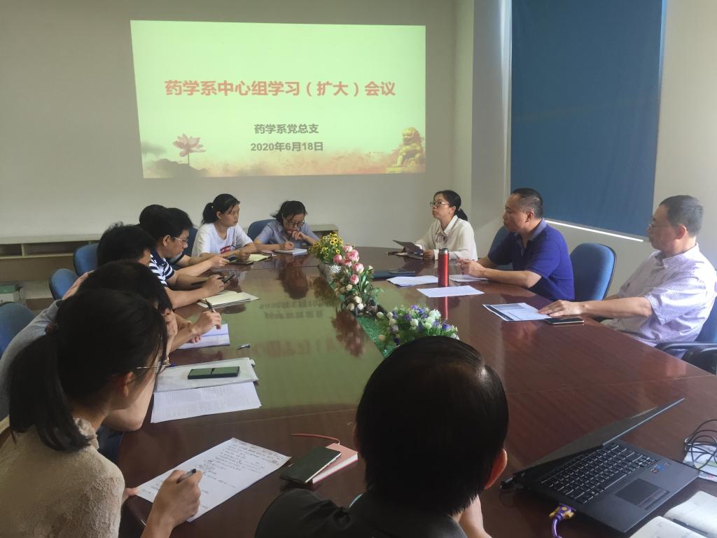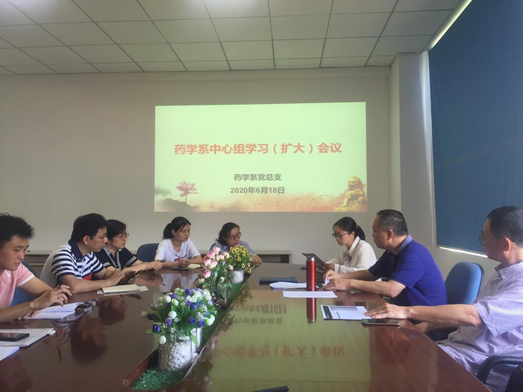 2020年6月18日,藥學系黨總支在系部會議室召開中心組學習(擴大)會議,會議由藥學系黨總支書記鄭力宏主持。
