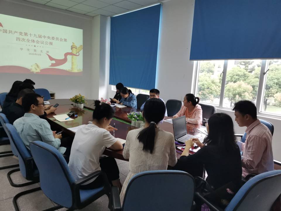 9月28日,藥學系學生黨支部召開學習中國共產(chǎn)黨第十九屆中央委員會第四次全體會議公報專題黨課。