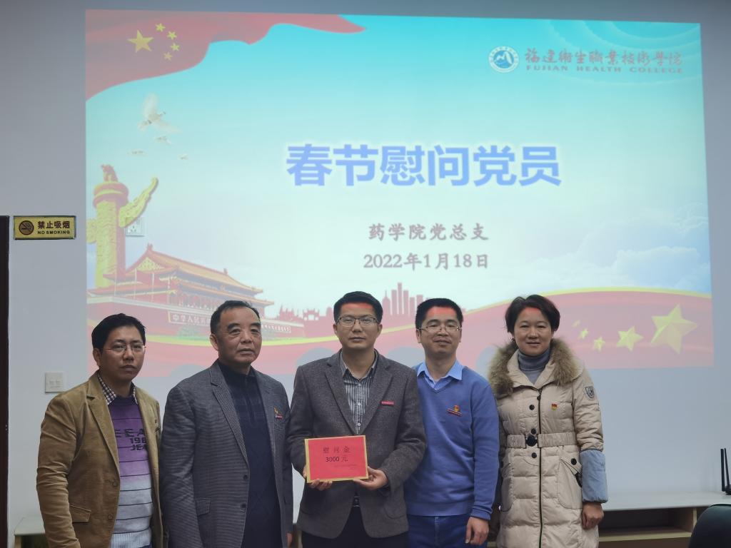 為貫徹落實(shí)《中共福建省委教育工委辦公室關(guān)于在元旦春節(jié)期間開(kāi)展走訪慰問(wèn)生活困難黨員、老黨員、老干部活動(dòng)的通知》(閩委教辦組〔2021〕4號(hào))要求,使廣大黨員、干部和群眾深切感受到以習(xí)近平同志為核心的黨中央的關(guān)懷和溫暖,2022年1月18日藥學(xué)院黨總支在會(huì)議室組織開(kāi)展春節(jié)慰問(wèn)黨員活動(dòng)。校紀(jì)委書(shū)記游鋒、藥學(xué)院領(lǐng)導(dǎo)班子蒞臨現(xiàn)場(chǎng)。