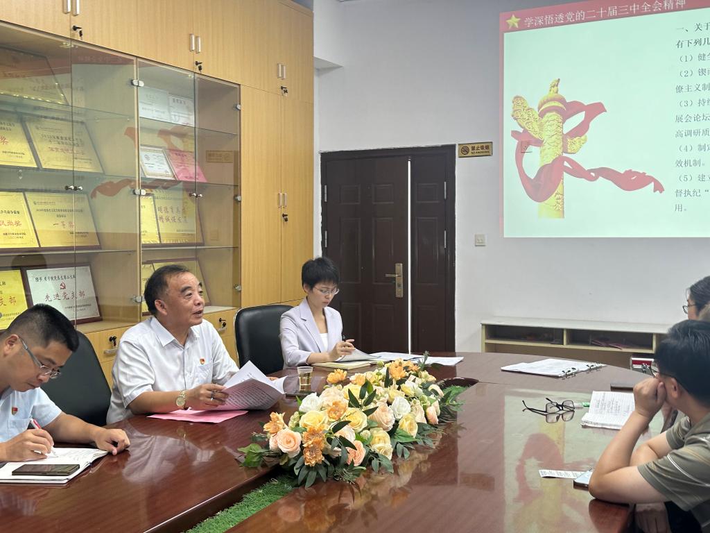 游鋒從“學(xué)深悟透黨的二十屆三中全會精神,推動全面從嚴治黨走深走實”、“以案為鑒、警鐘長鳴,推動黨紀學(xué)習教育常態(tài)長效”、“堅守初心使命,持續(xù)推進黨風廉政建設(shè)工作”等三個方面出發(fā),帶領(lǐng)藥學(xué)院教師深入學(xué)習黨的二十屆三中全會精神,把學(xué)習貫徹黨的二十屆三中全會精神深度融合于日常教學(xué)的工作實踐之中,緊密對接立德樹人的根本任務(wù),以及校園廉潔文化的全面構(gòu)建。