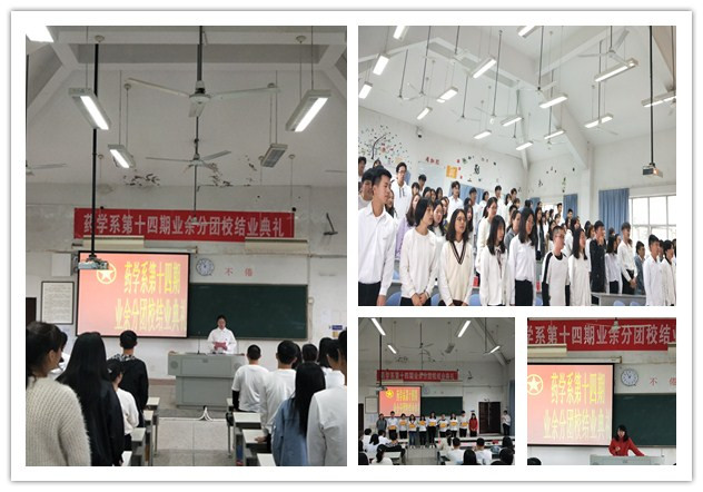 2018年12月5日,藥學系于藥二階隆重舉辦業(yè)余分團校結業(yè)典禮。藥學系黨總支副書記陳潔老師、團總支書記黃嵩梅老師、團總支副書記尹德愛老師及84名團校學員參加儀式。 大會在莊嚴的國歌中拉開序幕。首先由藥學系團總支副書記尹德愛老師宣讀團校結業(yè)名單;緊接著,學員代表葉永誠同學上臺發(fā)言,與學員們交流本期團校的心得。在大會最后,藥學系團總支書記黃嵩梅老師上臺做重要講話,對順利結業(yè)的學員們表示祝賀,同時勉勵學員們要進一步堅定理想信念,刻苦學習、奮發(fā)成才,在波瀾壯闊的中國特色社會主義偉大實踐中貢獻自己的青春和力量。 至此,藥學系第十四期業(yè)余分團校圓滿結束,共有76名同學順利結業(yè)。希望學員們勤奮學習,積極工作,吃苦在先,享受在后,為共產主義而奮斗。