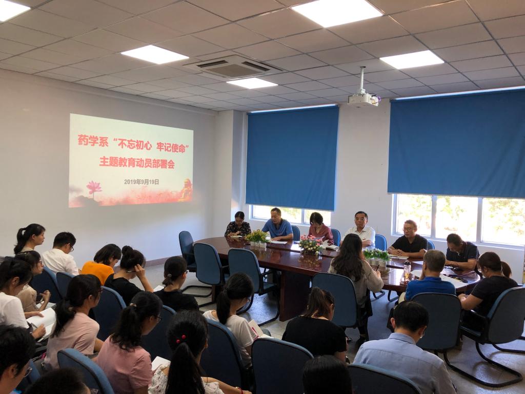 9月19日,藥學系黨總支于系部會議室召開“不忘初心、牢記使命”主題教育動員部署會。藥學系黨總支書記鄭力宏主持會議,學院紀委書記、第二巡回指導組組長游鋒同志及成員到會指導,藥學系領(lǐng)導班子成員、全體教職工黨員參加大會。