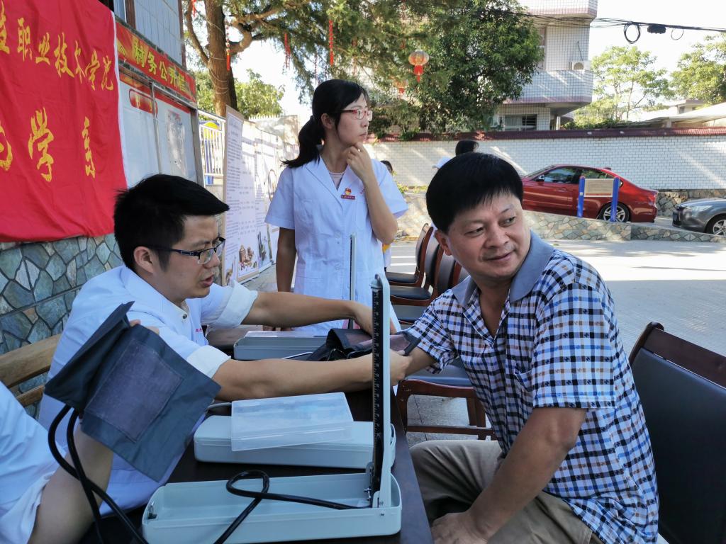 迎著炎炎烈日,支部黨員和志愿者們?cè)缭绲氐竭_(dá)關(guān)西村布置現(xiàn)場(chǎng)。此次活動(dòng)主要為當(dāng)?shù)卮迕駵y(cè)量血壓、開(kāi)展急救知識(shí)培訓(xùn)、提供特色花茶贈(zèng)飲等?;顒?dòng)期間,黨員們認(rèn)真地為村民測(cè)量血壓,用言語(yǔ)去交流,用耳朵去傾聽(tīng),給就診者提供準(zhǔn)確的身體健康數(shù)據(jù)及相關(guān)注意事項(xiàng)。支部委員黃曉敏同志為村民講解藥品使用和保管注意事項(xiàng),還為村民送上我系自制的特色花茶,消暑解渴。