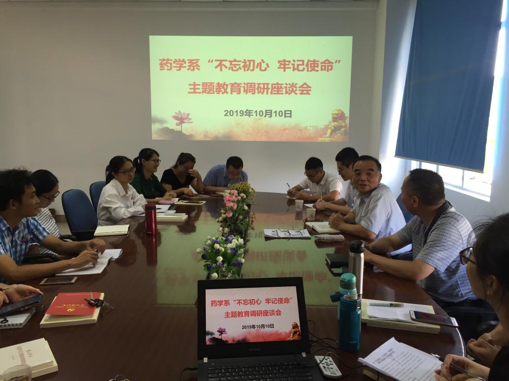2019年10月10日,學(xué)院紀(jì)委書(shū)記游鋒在藥學(xué)系召開(kāi)主題教育專(zhuān)題調(diào)研座談會(huì)。藥學(xué)系黨總支書(shū)記鄭力宏主持會(huì)議,紀(jì)檢監(jiān)察室楊金城、藥學(xué)系黨總支委員、支部書(shū)記、教研室主任、輔導(dǎo)員及教師代表參加座談會(huì)。
