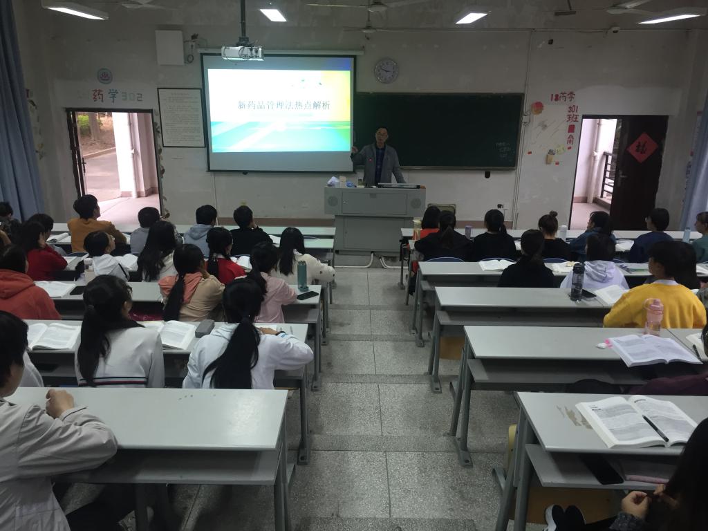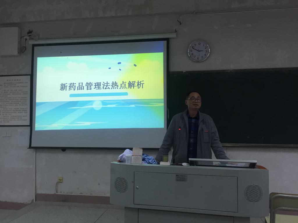 為加深同學(xué)們對(duì)當(dāng)前藥品市場(chǎng)新形勢(shì)的了解,進(jìn)一步掌握健康中國(guó)新理念,2019年11月22日,藥學(xué)系肖健副主任在藥一階為18藥學(xué)專業(yè)學(xué)生上主題為《新藥品管理法熱點(diǎn)解析》形勢(shì)與政策課。