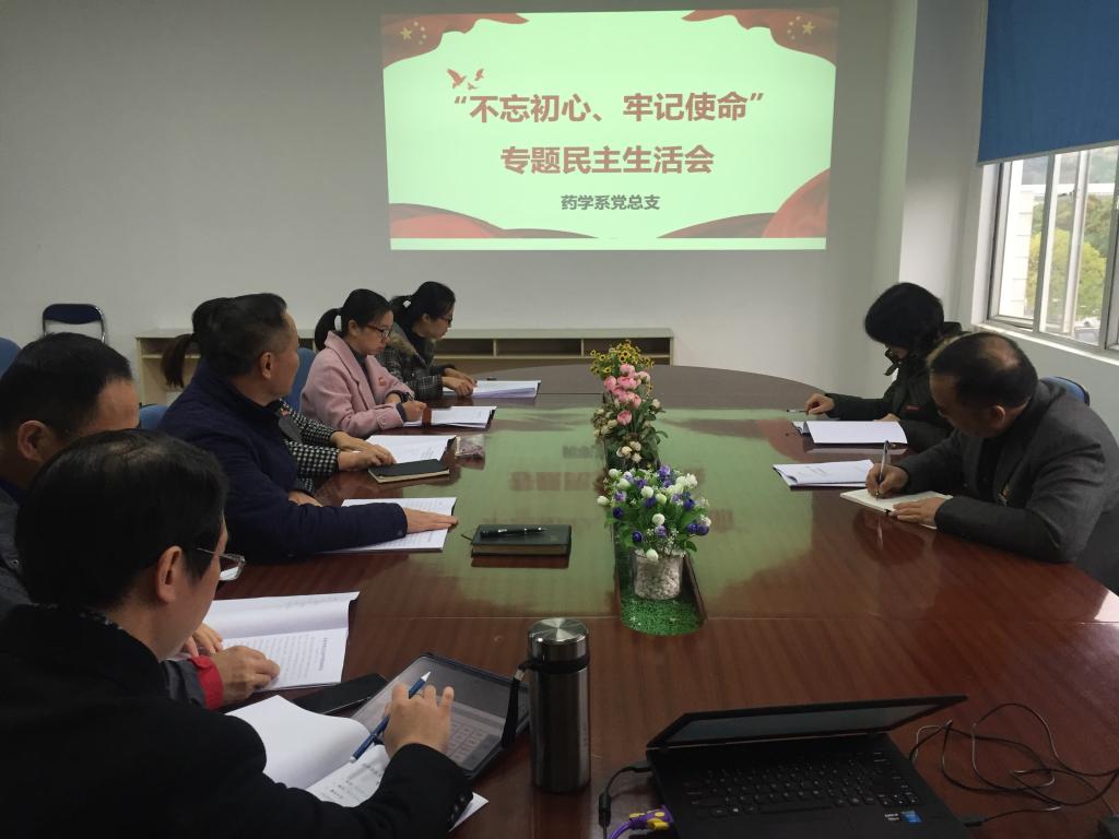 2019年12月5日,藥學(xué)系黨總支在系部會議室召開“不忘初心、牢記使命”專題民主生活會,學(xué)院第四巡回指導(dǎo)組組長、紀(jì)委書記游鋒同志、組員護(hù)理系黨總支專職組織員許慧瓊同志蒞臨會場,藥學(xué)系黨總支班子成員參會。
