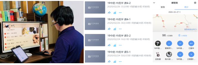 教研室主任何舒瀾老師任課的《中藥學(xué)》理論性強,課前他發(fā)布在線教學(xué)程序與預(yù)習視頻,讓學(xué)生利用業(yè)余時間先熟悉課程,課中教師通過“電腦、iPad1+1”掌控教學(xué)全過程,電腦進行直播,通過共享屏幕播放PPT剖析重難點,iPad實時接收學(xué)生提問,及時解答學(xué)生提出的問題,課后“學(xué)習通”布置作業(yè),檢驗學(xué)生聽課效果。這樣的在線教學(xué)方式,不僅授課環(huán)節(jié)完整,教學(xué)質(zhì)量良好,而且還實現(xiàn)了“學(xué)生實時發(fā)問,教師及時回答”的良好互動,直播回放的功能也為學(xué)生課后回看不易理解的知識點提供便利,表現(xiàn)出在線教學(xué)的優(yōu)勢。
