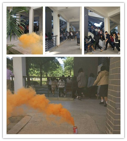 “嗚……嗚……”一陣刺耳的哨音驟然響起,全體學(xué)生收到“立即撤離”的指令后用衣物、手帕等捂住口鼻,彎著腰,貓著步,快速、有序、安全地疏散到操場(chǎng)指定地點(diǎn),相關(guān)工作人員迅速清點(diǎn)人數(shù),并向現(xiàn)場(chǎng)指揮部報(bào)告,500多名學(xué)生的整個(gè)疏散過程僅用了1分15秒。