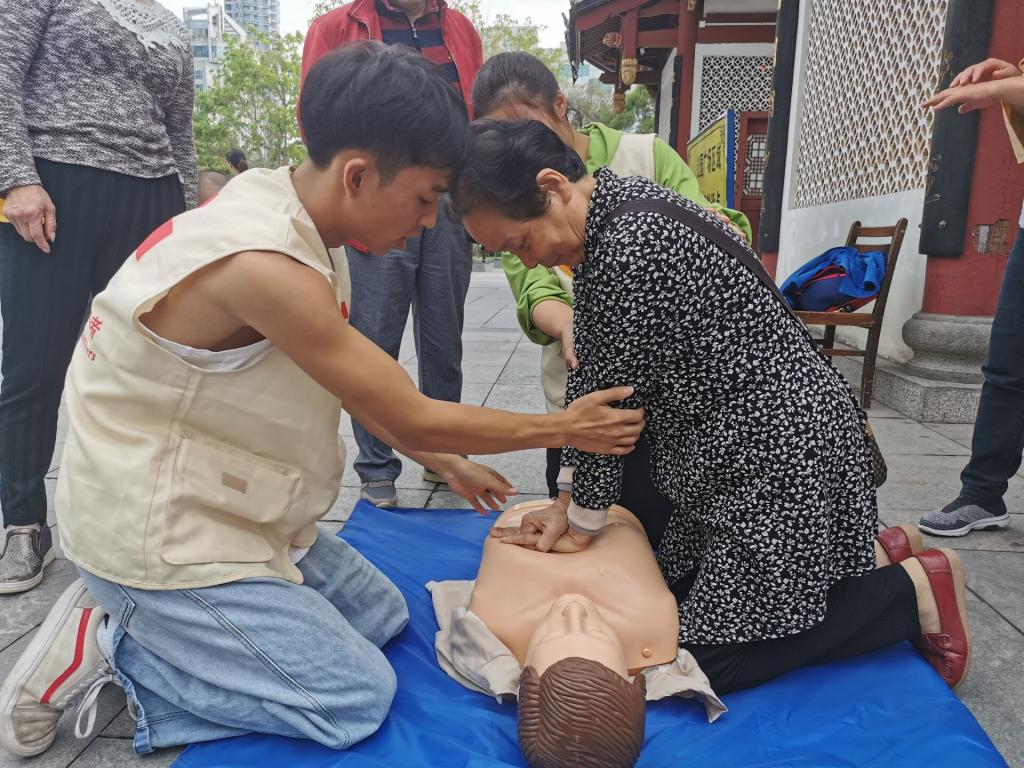 當(dāng)天上午,學(xué)生志愿者們早早來到左海公園門口,布置現(xiàn)場并擺好所需器材,準(zhǔn)備迎接社區(qū)居民的到來。此次活動有量血壓、測血糖、急救知識宣講與演示、按摩拔罐等義診項(xiàng)目?;顒娱_始不久,排隊(duì)居民就絡(luò)繹不絕。志愿者們認(rèn)真、熱情地為每一位居民朋友提供義診服務(wù),并對居民咨詢的問題一一給予解答。同時,還提醒前來義診的老年人要定期進(jìn)行體檢,鼓勵他們要樹立積極樂觀的生活態(tài)度,對部分存在亞健康的年輕人建議要規(guī)律作息時間,合理搭配飲食,養(yǎng)成健康的生活習(xí)慣。