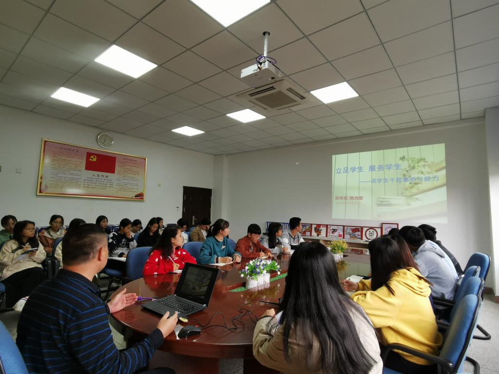 為進一步加強我系學(xué)生會干部隊伍建設(shè),增強隊伍凝聚力、執(zhí)行力,提升學(xué)生干部自身素質(zhì),2019年11月27日,藥學(xué)系黨總支鄭力宏書記于系部會議室為27名團學(xué)干部講授主題為“立足學(xué)生,服務(wù)學(xué)生——學(xué)生干部應(yīng)具備的能力與素質(zhì)”的專題講座。