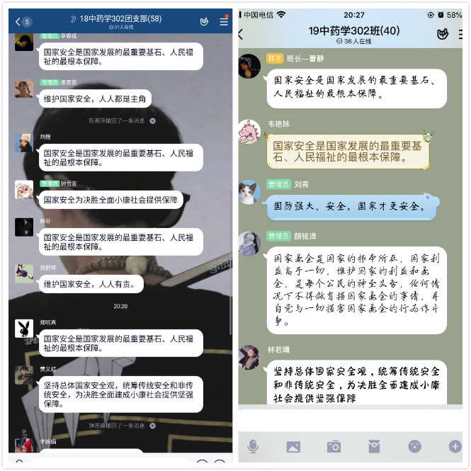 我系各團(tuán)支部組織召開了以“國家安全教育日”為主題的“云”團(tuán)課,各支部聚焦團(tuán)日主題,緊密結(jié)合新冠肺炎疫情防控形勢任務(wù),重點(diǎn)圍繞公共衛(wèi)生安全、生物安全等內(nèi)容集中學(xué)習(xí)、分享討論,強(qiáng)化團(tuán)員青年維護(hù)國家安全的責(zé)任感與使命感。