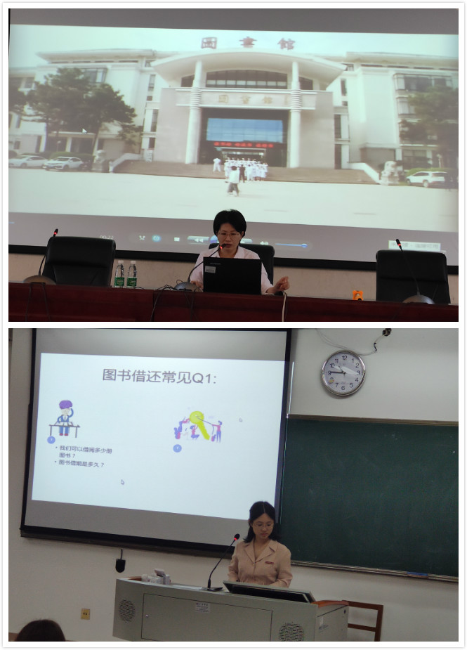 劉穎、林玲向同學(xué)們講解了圖書館的紙質(zhì)、電子館藏情況;書刊借還流程;閱覽基本規(guī)則,并希望同學(xué)們以書為伴、汲取營養(yǎng)、內(nèi)化于心。