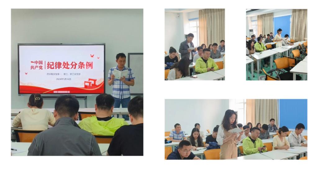 紀(jì)律是管黨治黨的“戒尺”,也是黨員、干部約束自身行為的標(biāo)準(zhǔn)和遵循。為深入學(xué)習(xí)貫徹新修訂的《中國(guó)共產(chǎn)黨紀(jì)律處分條例》,2024年5月16日,藥學(xué)院學(xué)生第一、二、三黨支部在藥學(xué)院501-3會(huì)議室開(kāi)展黨紀(jì)學(xué)習(xí)教育。