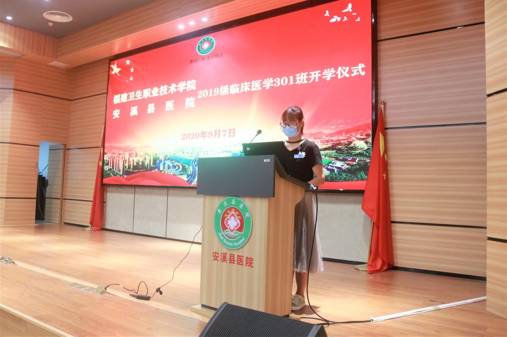 鐘露同學代表全體學生發(fā)言,表示將嚴格自律、勤思敏行,向醫(yī)院的優(yōu)秀老師們學習,加快成長速度,早日成為一名合格的白衣戰(zhàn)士。