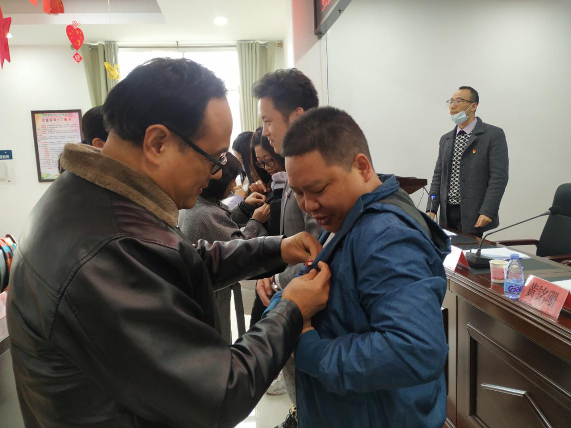 隨后,我校領導與專業(yè)教師為新學員佩戴學校?;?,勉勵他們謹記“業(yè)精德誠”的校訓,好好學習,提高理論和實踐水平。