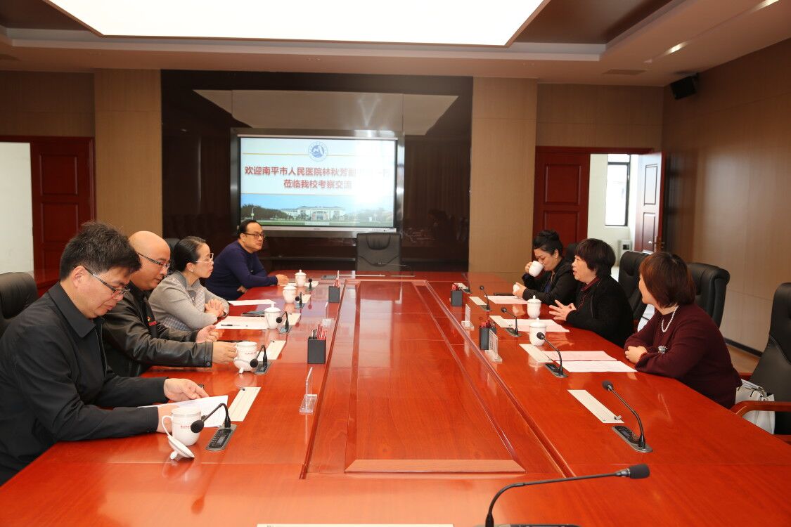 4月7日上午,南平市人民醫(yī)院副書記林秋芳、護(hù)理部督導(dǎo)毛勇敏、科教科主任陳碩等一行3人蒞臨 我校,洽談合作辦學(xué)事宜。副院長(zhǎng)鄭翠紅、教務(wù)處處長(zhǎng)朱扶蓉、實(shí)習(xí)實(shí)訓(xùn)中心副主任梁艷以及醫(yī)學(xué)系黨總支書記邱滾忠、副主任林國(guó)威、陳銘參加會(huì)議。
