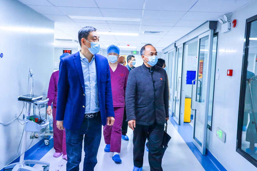 開班儀式結(jié)束后,李朝暉帶領(lǐng)許能鋒等到醫(yī)院各科室走訪參觀。