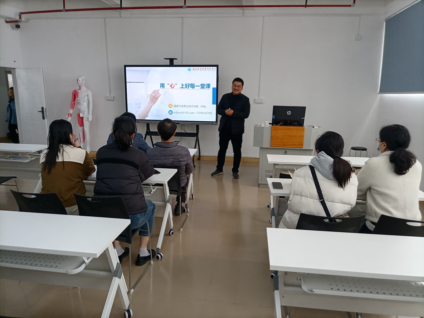 我校與安溪縣中醫(yī)院是首次合作辦學(xué),安溪縣中醫(yī)院科教科科長蘇全貴給學(xué)生講授《經(jīng)絡(luò)與腧穴》,我校一行結(jié)合課堂教學(xué)情況提出建議,并由專業(yè)老師開展教學(xué)培訓(xùn)。