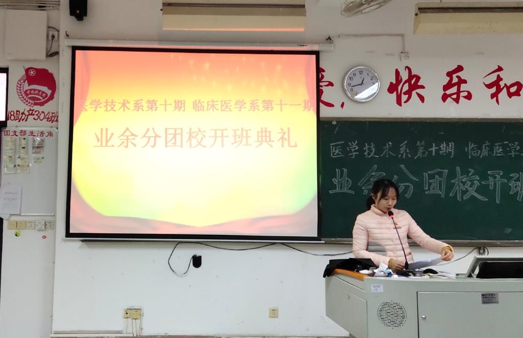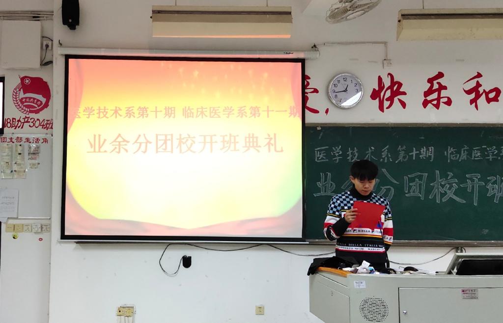 為提高團(tuán)組織的凝聚力和戰(zhàn)斗力,做好我系學(xué)生團(tuán)員的發(fā)展工作。臨床醫(yī)學(xué)系第十一期業(yè)余分團(tuán)校于12月20日中午在教學(xué)樓210舉行開班儀式。我系黨總支負(fù)責(zé)人陳俊穎副書記、陳潔副書記、醫(yī)學(xué)技術(shù)系黨總支負(fù)責(zé)人邱滾忠副書記、兩系團(tuán)總支書記、副書記和輔導(dǎo)員老師們,以及兩系各委員及業(yè)余分團(tuán)校的所有學(xué)員共同出席、參加了開班儀式。