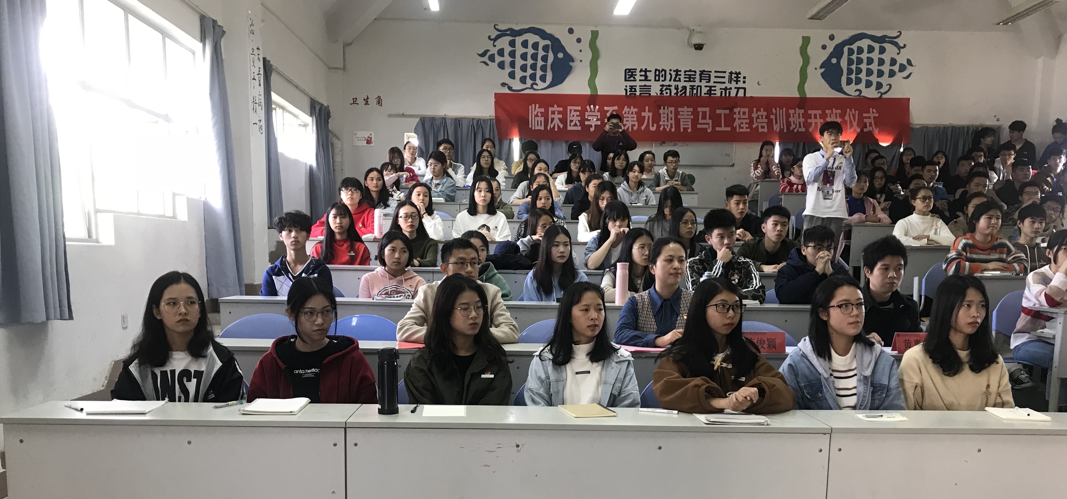 為了加強(qiáng)我系團(tuán)學(xué)干部的綜合素質(zhì),切實(shí)提高學(xué)習(xí)熱情及積極性,臨床醫(yī)學(xué)系于11月29日中午在基礎(chǔ)部二階舉辦第九屆青馬工程開(kāi)班儀式,臨床醫(yī)學(xué)系黨總支陳俊穎副書(shū)記、團(tuán)總支謝林輝副書(shū)記及輔導(dǎo)員黃惠龍老師出席此次開(kāi)班儀式。