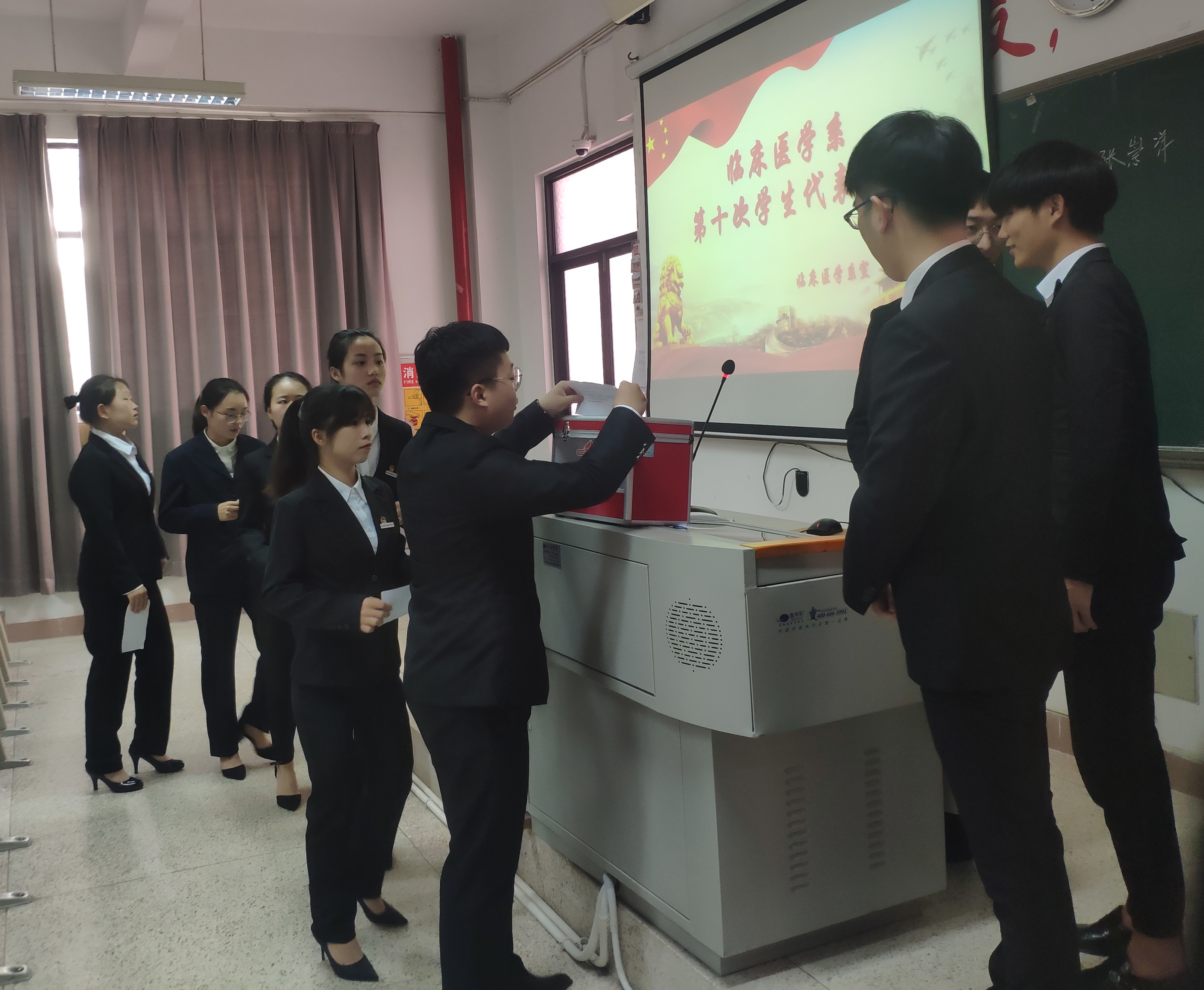 大會的第二階段,臨床醫(yī)學(xué)系第九屆學(xué)生會主席史嘉輝同學(xué)及副主席張灝楠同學(xué)分別就在任期間的工作總結(jié)匯報并對下一屆學(xué)生會提出建議與希望。與會代表以無記名投票的方式,選舉產(chǎn)生了臨床醫(yī)學(xué)系第十屆學(xué)生會主席邱鑫宇和副主席齊淑煒同學(xué)。
