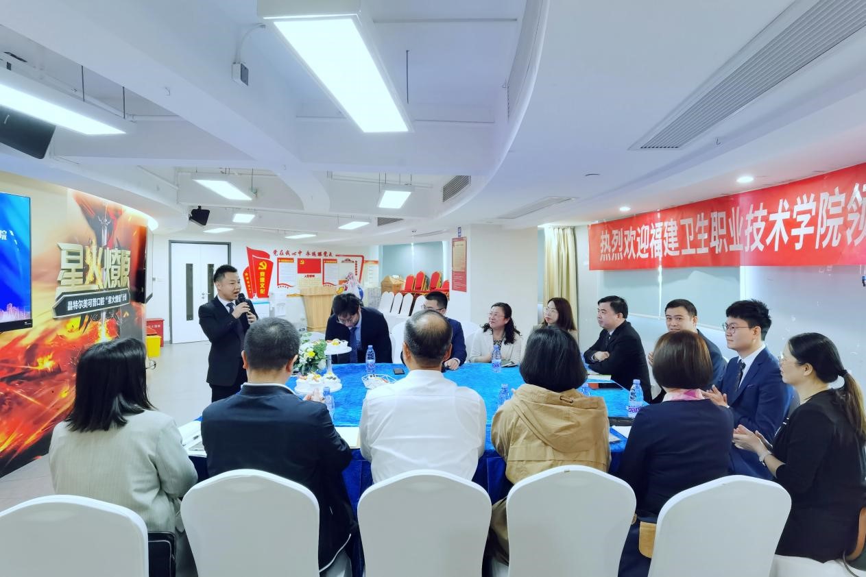 許能鋒從學(xué)校歷史沿革、辦學(xué)規(guī)模、辦學(xué)特色、人才培養(yǎng)等方面介紹了學(xué)校的基本情況。雙方就社會(huì)實(shí)踐、畢業(yè)生就業(yè)、設(shè)立企業(yè)獎(jiǎng)學(xué)金等問題充分交換意見并達(dá)成初步共識(shí);就用人需求和招聘設(shè)想等方面進(jìn)行充分溝通,達(dá)成了相關(guān)崗位專項(xiàng)招聘意向。雙方希望以市場(chǎng)需求和學(xué)校人才培養(yǎng)為切入點(diǎn),不斷深化師資共享、人才供需對(duì)接等領(lǐng)域的合作。隨后,在美可普口腔醫(yī)院工作的我校校友詹仕杰、陳瀟怡兩位醫(yī)生結(jié)合自身工作實(shí)際就職業(yè)成長(zhǎng)、發(fā)展機(jī)遇等方面做了詳細(xì)分享。