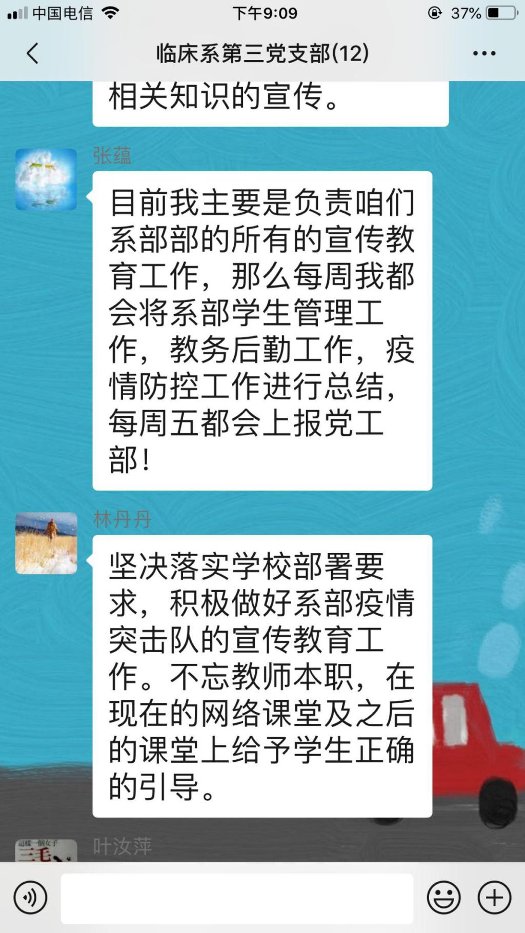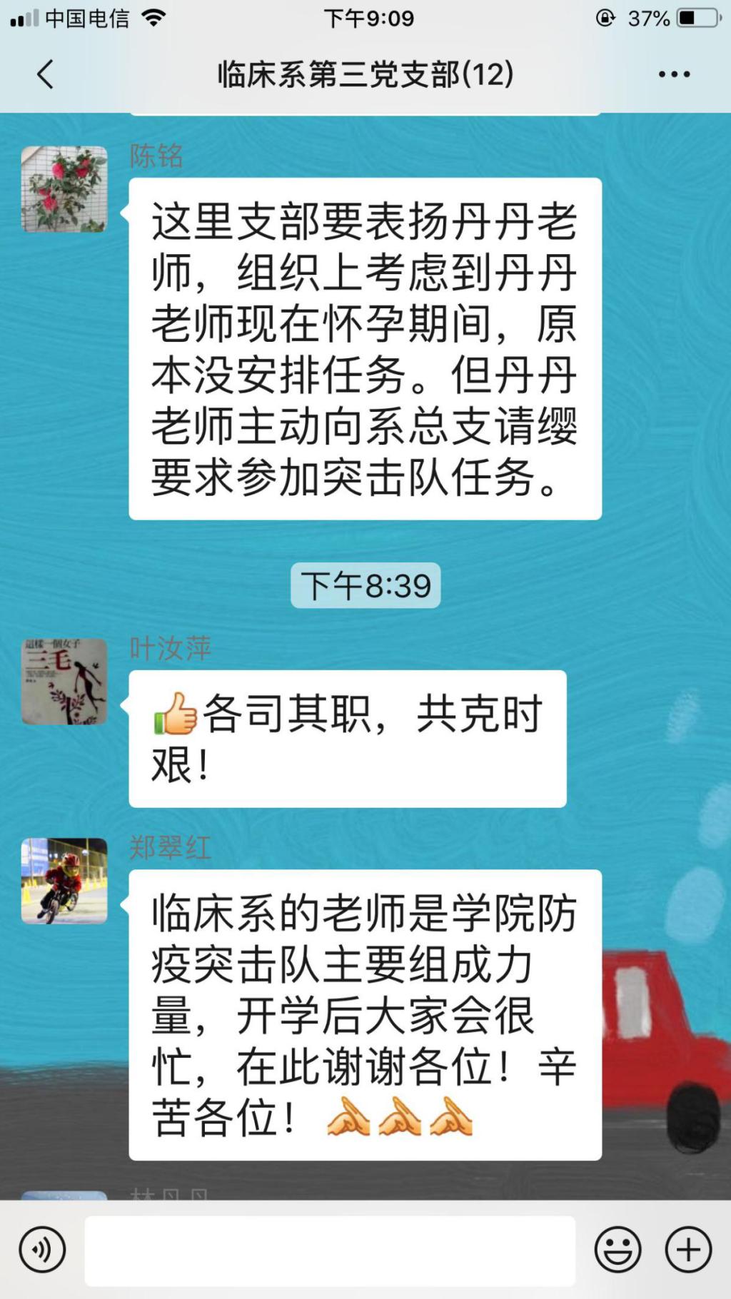 通過認(rèn)真學(xué)習(xí),與會的黨員同志們紛紛表示,作為教師黨員也作為防疫突擊隊的成員,會密切關(guān)注疫情變化,關(guān)注學(xué)生動態(tài)及身體情況,對學(xué)生做好宣傳教育工作,積極投身于防疫工作中。同時,不忘教師本職,精心備課,利用網(wǎng)絡(luò)課堂教學(xué),做到“離校不離教、停課不停學(xué)”。鄭翠紅副校長還指出,臨床系老師是學(xué)院防疫突擊隊主要組成力量,讓我們同心聚力,打贏防疫阻擊戰(zhàn)!