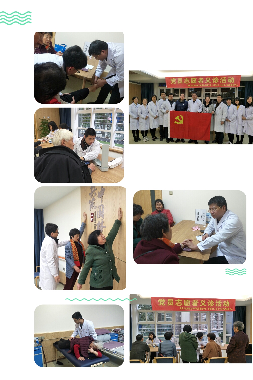 2018 年12月14日下午臨床醫(yī)學(xué)系黨總支組織第一、二、三黨支部11位黨員教職工前往金山街道水都社區(qū)居家養(yǎng)老服務(wù)中心開展黨員志愿義診活動暨主題黨日活動。學(xué)院黨委副書記、院長蘇友新同志以一名普通黨員身份參加活動。