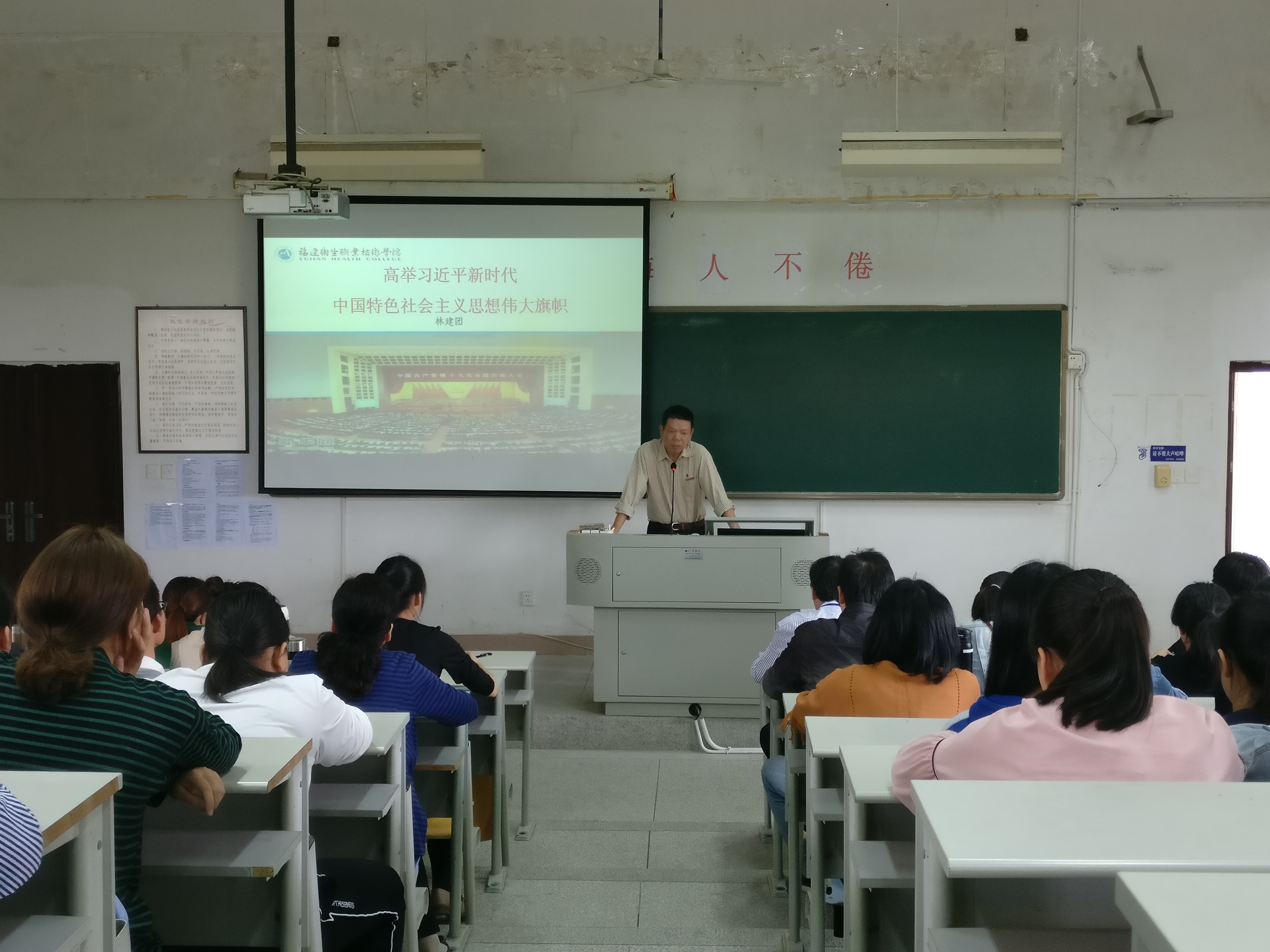 林建團(tuán)副書記圍繞著“新時代中國特色社會主義”這個核心,從“中國特色社會主義進(jìn)入新時代的客觀依據(jù)”、“中國特色社會主義進(jìn)入新時代的內(nèi)涵定位”、“新時代中國特色社會主義呼喚科學(xué)理論”、“習(xí)近平新時代中國特色社會主義思想的精神實質(zhì)”、和“習(xí)近平新時代中國特色社會主義思想的歷史貢獻(xiàn)”五個方面,對黨的十九大精神進(jìn)行了全面深刻的解讀,并對如何做好當(dāng)前的工作做出部署。