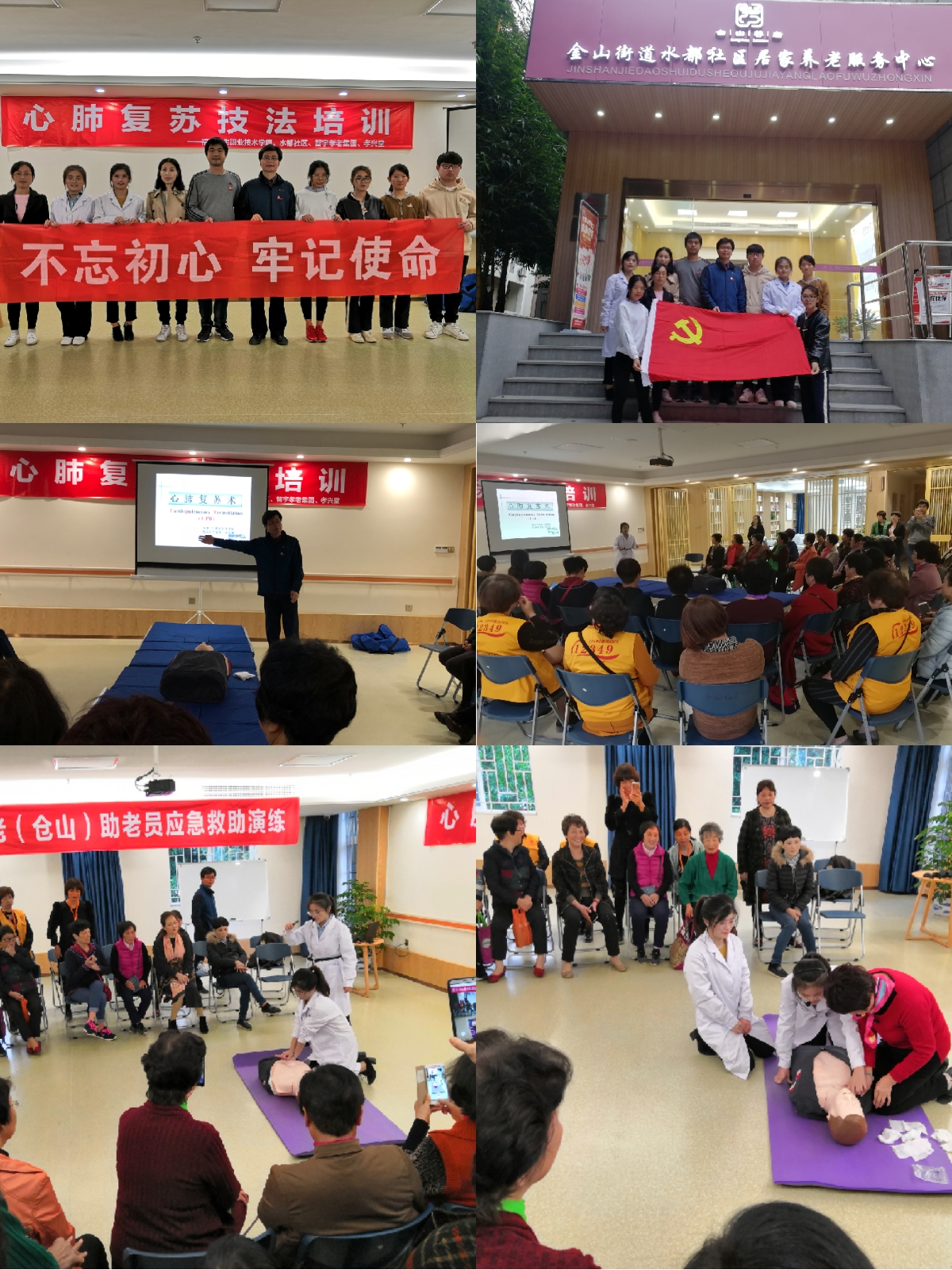 為深入學(xué)習(xí)貫徹習(xí)近平新時代中國特色社會主義思想和黨的十九大精神,進(jìn)一步深化“不忘初心、牢記使命”主題教育,臨床醫(yī)學(xué)系第三黨支部組織黨員教師6名與學(xué)生入黨積極分子4名于11月22日下午在福州市金山街道水都社區(qū)居家養(yǎng)老服務(wù)中心(下稱“中心”)開展“分秒必爭—心肺復(fù)蘇術(shù)培訓(xùn)”的主題黨日活動。