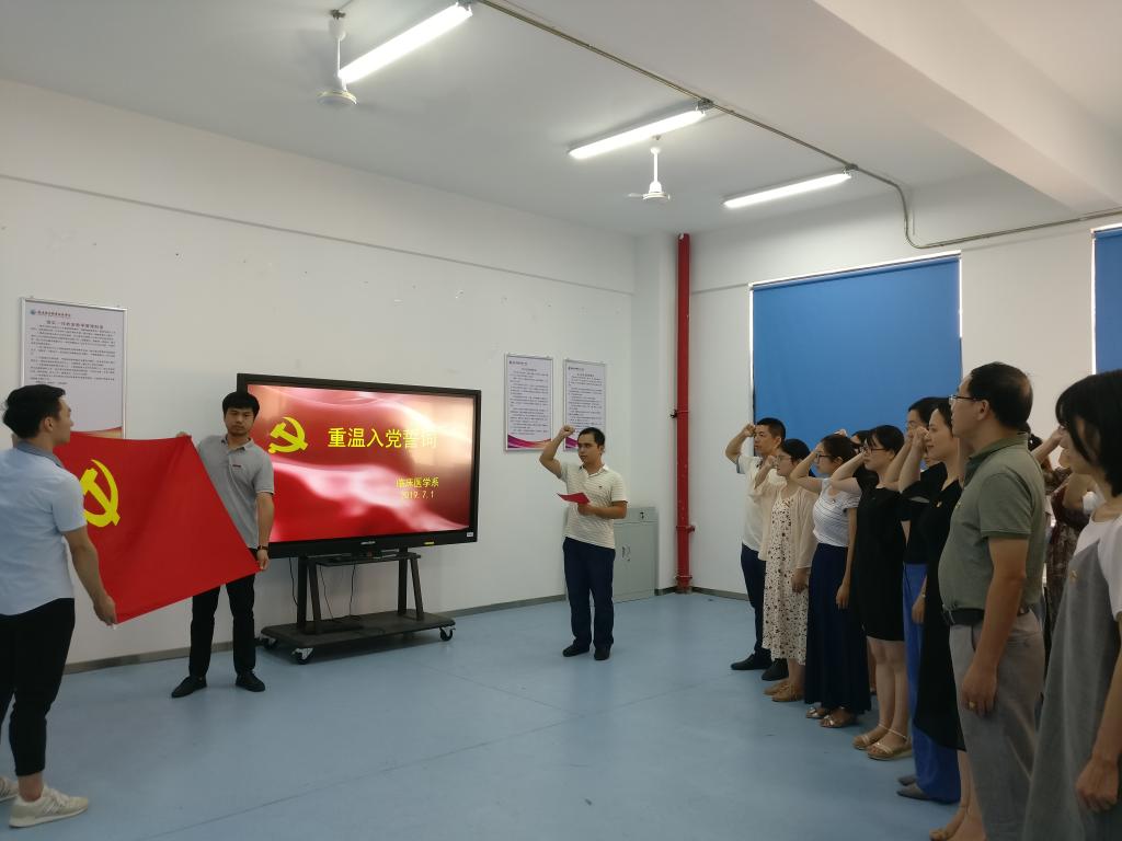 2019年7月1日,在中國共產黨成立98周年之際,為進一步教育引導全體黨員不忘初心、牢記使命,臨床醫(yī)學系第一、第二、第三黨支部在實訓樓401舉辦“重溫入黨誓詞,牢記初心使命”主題黨日活動。